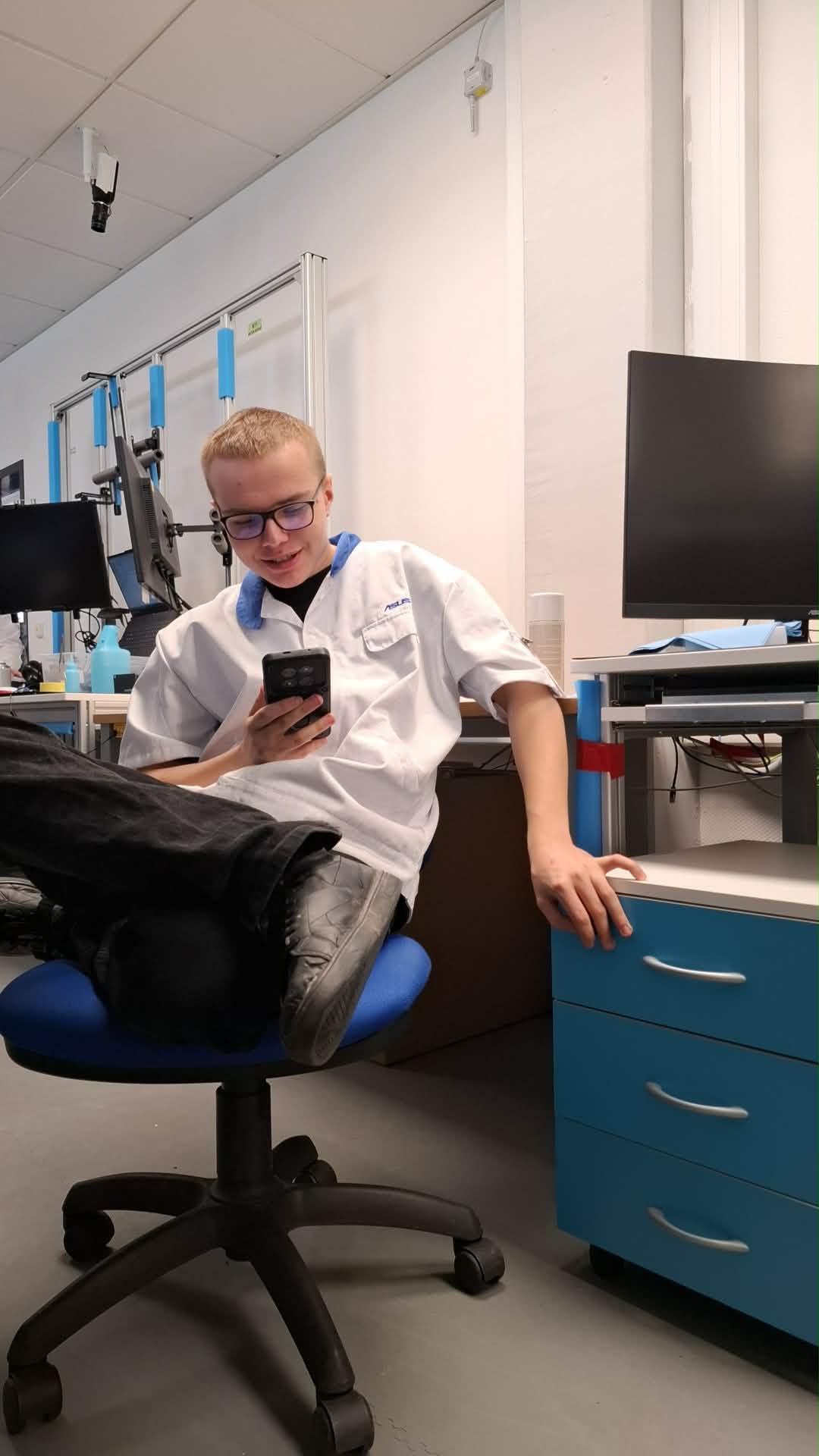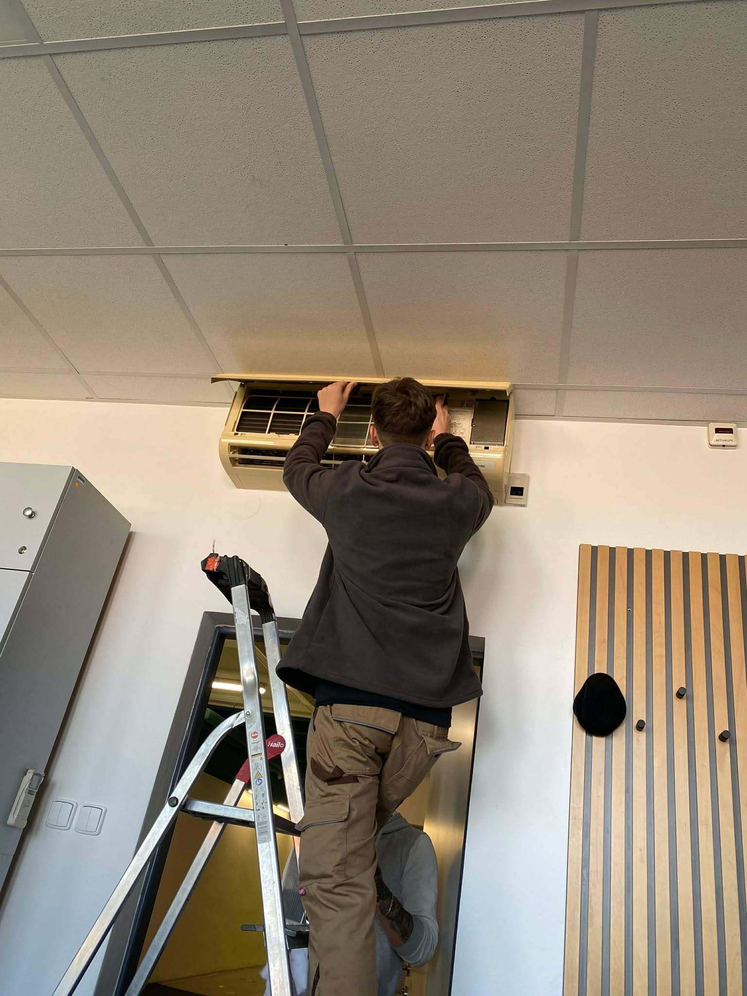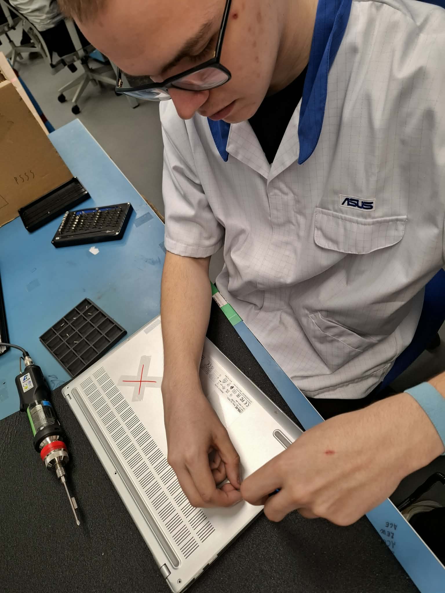 Ostrawa – szósty dzień stażu. Dzisiaj elektrycy podłączali wewnętrzną linię zasilającą. Mechanicy tworzyli fazy w otworach, obsługiwali wykrawarkę CNC i wykrawali z blachy gotowe półfabrykaty. Fotografowie zajmowali się obróbką materiałów z całego ubiegłego tygodnia. Informatycy przygotowywali laptopy do utylizacji. Technicy elektronicy dokonywali przeglądu oraz czyszczenia jednostek wewnętrznych i zewnętrznych klimatyzacji. Po kolacji odbyliśmy spotkanie online z koordynatorką projektu panią Wiolettą Krawiec.