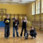 Młodzież prezentuje nowy sprzęt sportowy zakupiony za nagrodę za zajęcie II miejsca w Turnieju Siatkarskim organizowanym przez II LO i Młodzieżową Radę Miasta Tarnowa:
