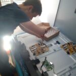 Dziś informatycy zapoznawali się z dokumentami polityki bezpieczeństwa obowiązującymi w firmie. Poznane zasady stosowali zabezpieczając dostęp do systemu oraz chroniąc dane użytkownika systemu przed zawirusowaniem czy utratą danych. Jedna grupa elektryków wykonywała instalacje na podstawie zadanej dokumenatcji, sprawdzała poprawność montażu i jakości wykonanej pracy. Dokonywała również pomiarów sprawdzających. Druga grupa montowała urządzenia AGD i wykonywała instalacje. Elektronicy zapoznawali się ze sprzętem pomiarowym i diagnostycznym stosowanym przy serwisowaniu automatyki przemysłowej. Dokonywali pomiarów przebiegów czasowych i poszczególnych wartości prądu i napięcia, pomiarów parametrów czujników. Następnie interpretowali wyniki pomiarów.