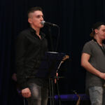 Wkroczył. Ale Azyl w środku miasta. Wkroczył z taką energią i pewnością siebie, że cała aula oniemiała już przy pierwszych rytmach. Stworzyli show w oparciu o stare szlagiery i zrobili to tak przekonywująco, że od razu wszyscy idealnie wczuliśmy się w ten klimat. Klaudiusz, wyjątkowy wokalista, wspaniale przygotowany wokalnie, wyraził siebie na scenie, pokazał ognisty temperament i obycie sceniczne. Zniecierpliwiony przechadzał się po scenie, gdy Kuba Kuczek i Mateusz, naprzemiennie z Marcinem, grali solówki na swoich instrumentach. Zniecierpliwienie Klaudiusza osiągnęło apogeum, gdy muzycy zeszli na bok sceny odsłaniając Kubę Nowaka, perkusistę, który umiejętnie wplótł w koncert improwizację. Zaczął delikatnie, potem gwałtownie przyspieszył, przez chwilę grał nawet jedną ręką. Klaudiusz odliczał minuty, a Kuba grał i grał i grał…