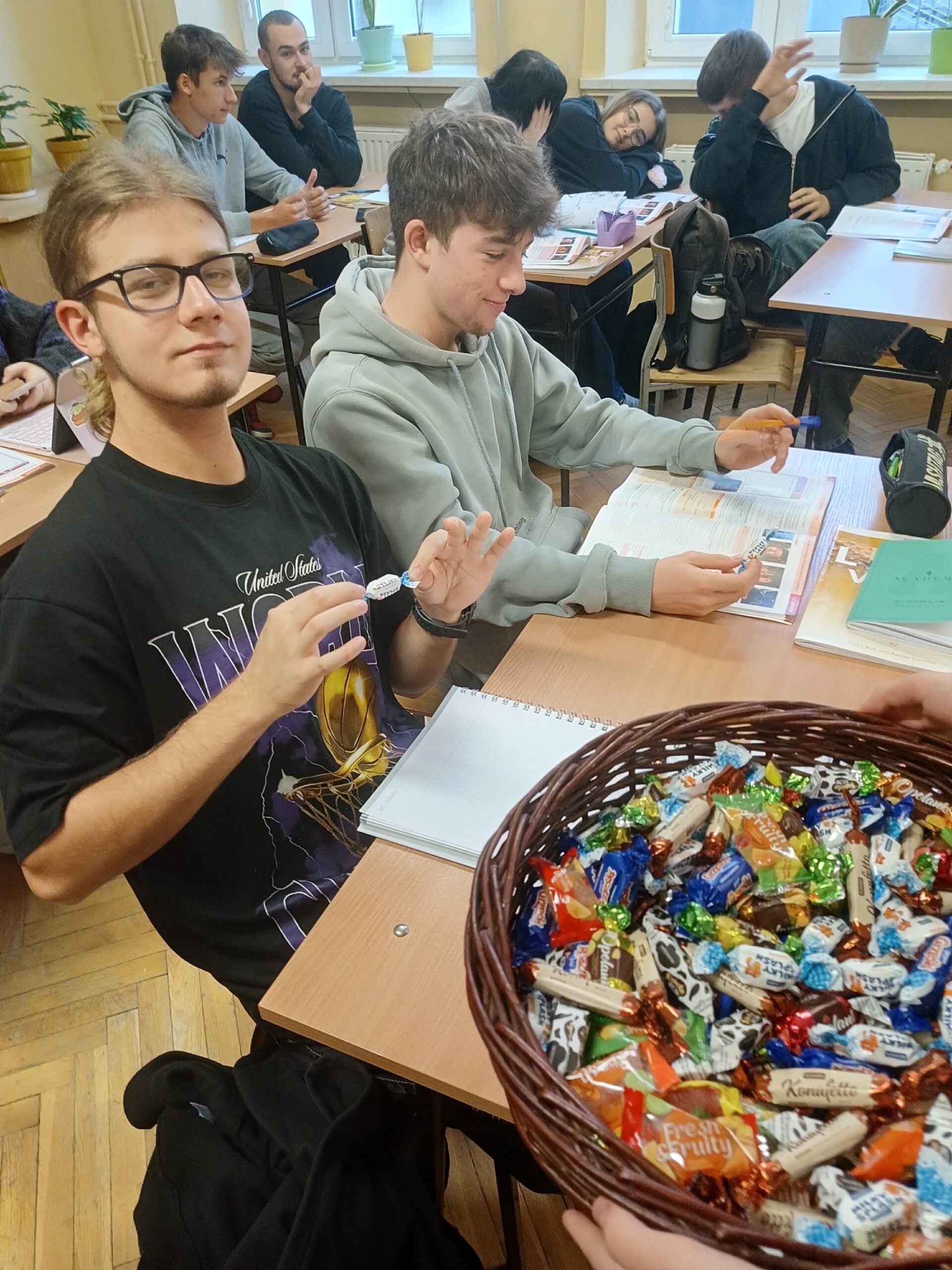 Z tej okazji uczennice ZST przygotowały dla swoich kolegów słodką niespodziankę – pyszne cukierki, które zostały ufundowane przez Radę Rodziców. Miły gest wywołał uśmiechy i zadbał o wyjątkową atmosferę tego dnia.