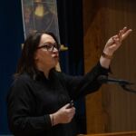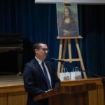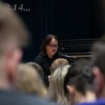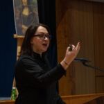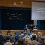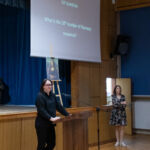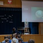 Świętowanie rozpoczęliśmy od przymówienia p. dyr. Jacka Różyckiego oraz wykładu p. Katarzyny Al Fatal w języku angielskim – „Ciąg Fibonacciego i złoty podział”. Dowiedzieliśmy się wielu ciekawych rzeczy o liczbie ɸ, złotym podziale i jego obecności w malarstwie, muzyce, architekturze i przyrodzie. Dla uważnych słuchaczy wykładu były pytania konkursowe i nagrody.