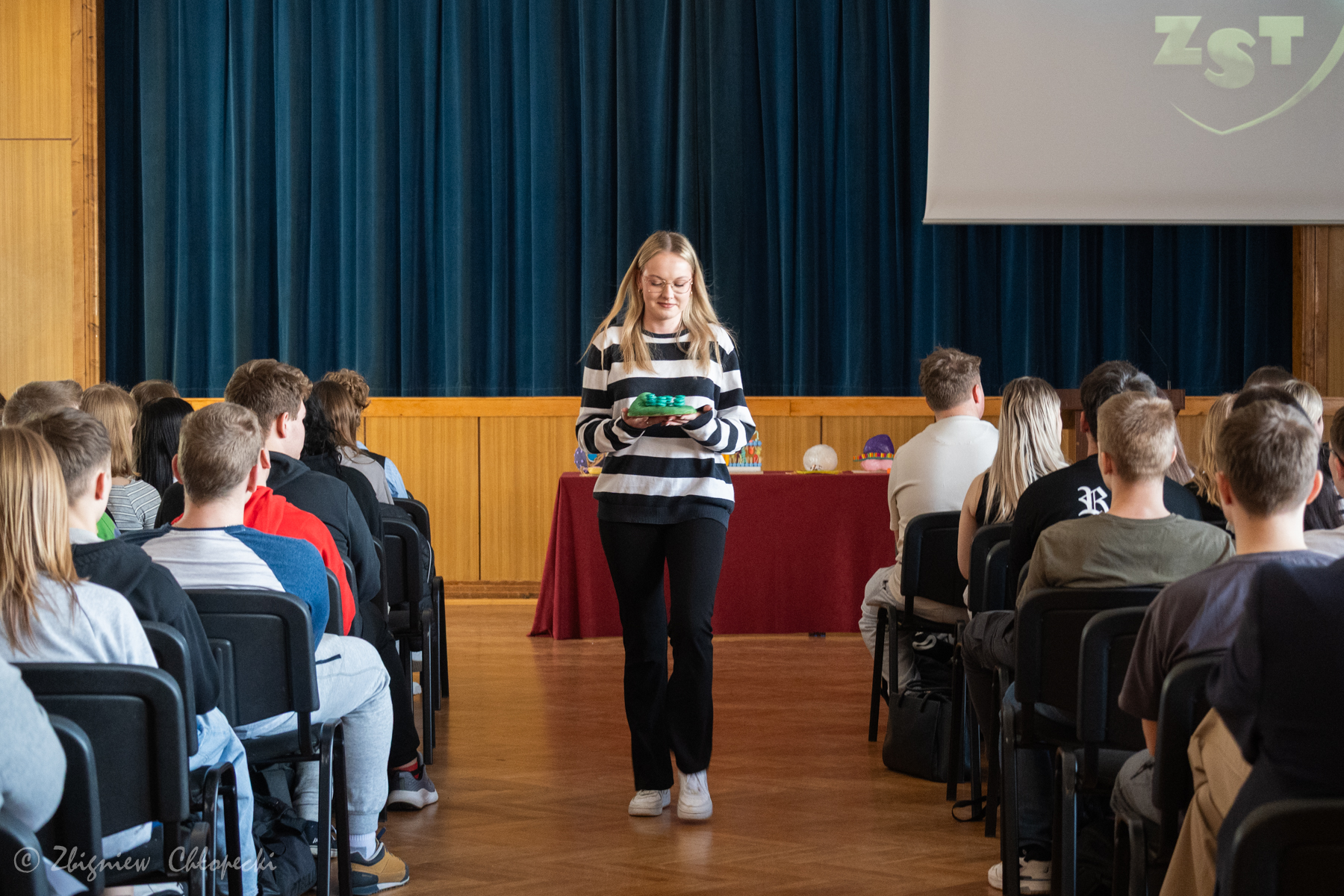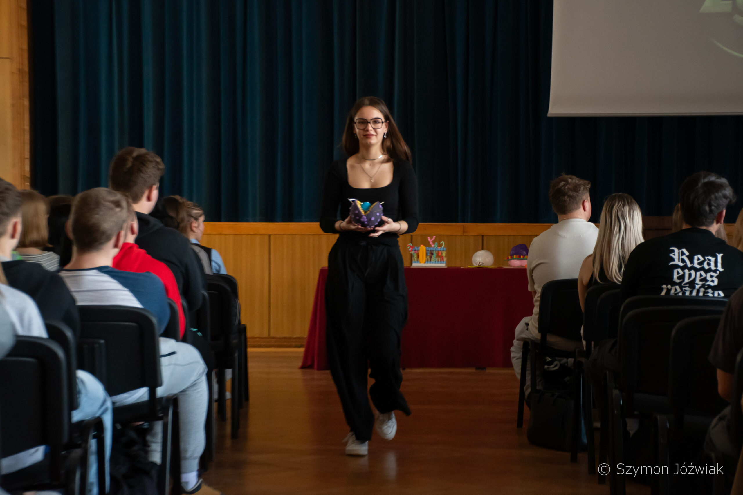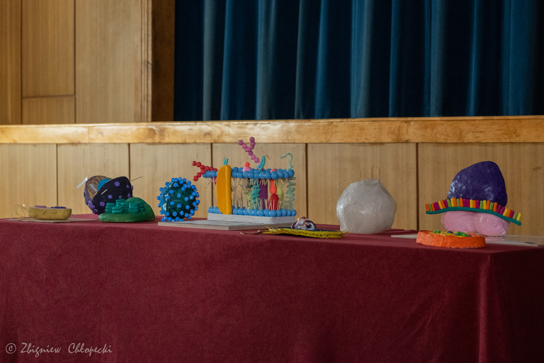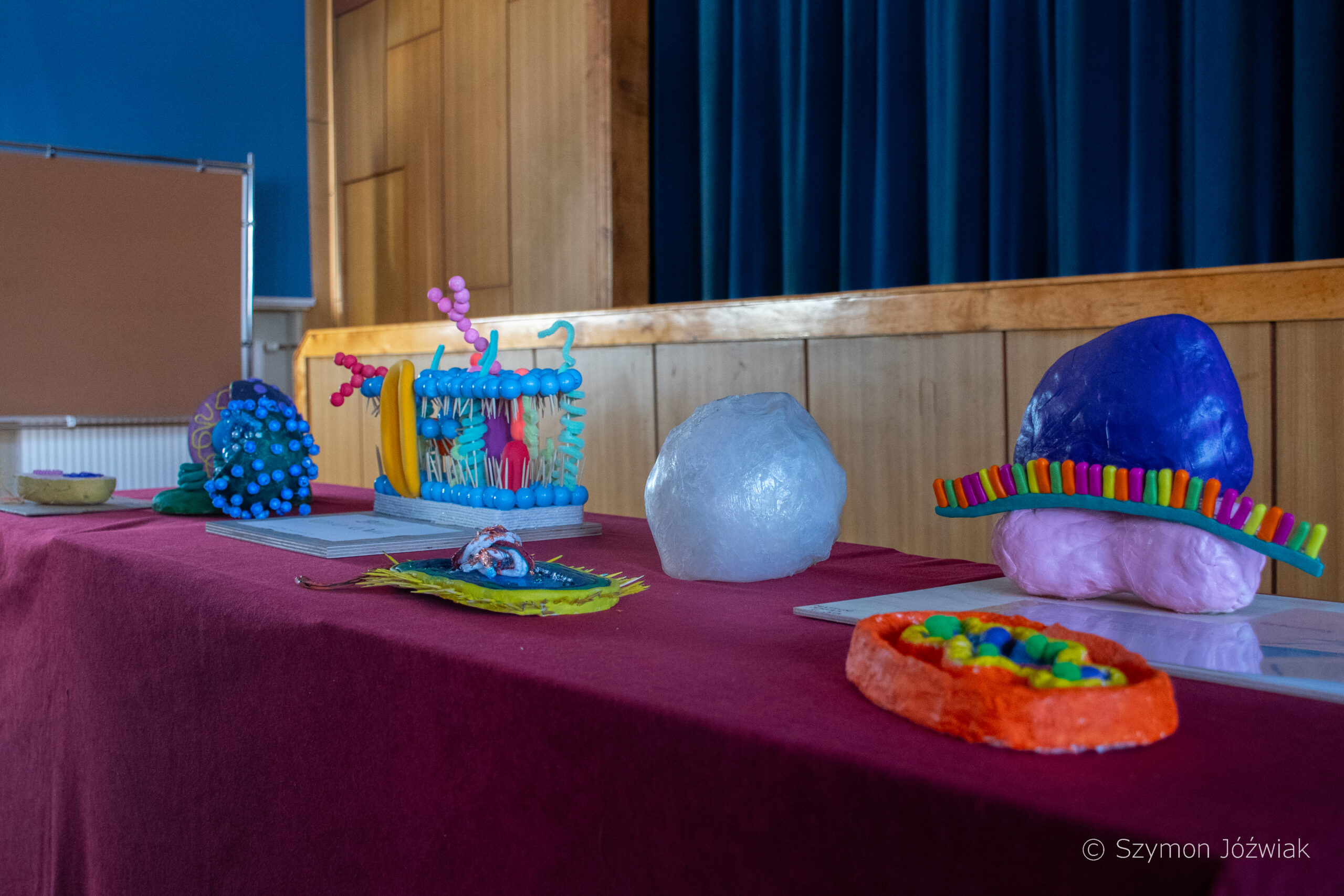 Uczniowie przygotowali modele struktur komórkowych, które prezentowali podczas gali finałowej.