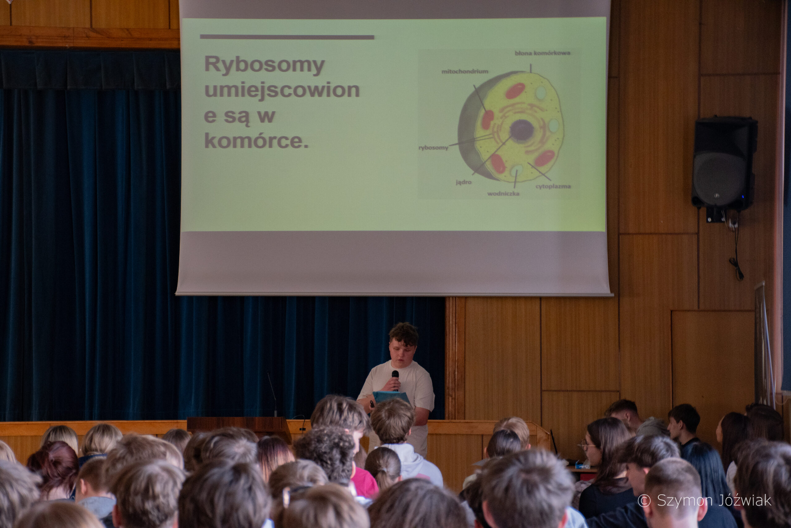 II miejsce – Mateusz Jewuła z klasy 3A – zaprezentował rybosom;