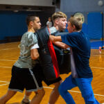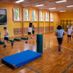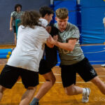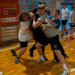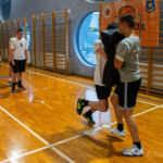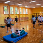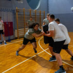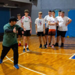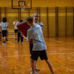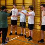 Zajęcia rozpoczęły się od wspólnej, ogólnorozwojowej rozgrzewki, po której uczniowie zostali podzieleni na trzy grupy. Każda z grup trenowała z innym zawodnikiem Hunters, ucząc się techniki rzutu piłką, chwytania jej w biegu, blokowania przeciwnika oraz ćwicząc koordynację ruchową. Zawodnicy i trenerzy dbali o to, aby każdy uczestnik wyniósł z zajęć jak najwięcej – zarówno wiedzy, jak i dobrej sportowej energii.