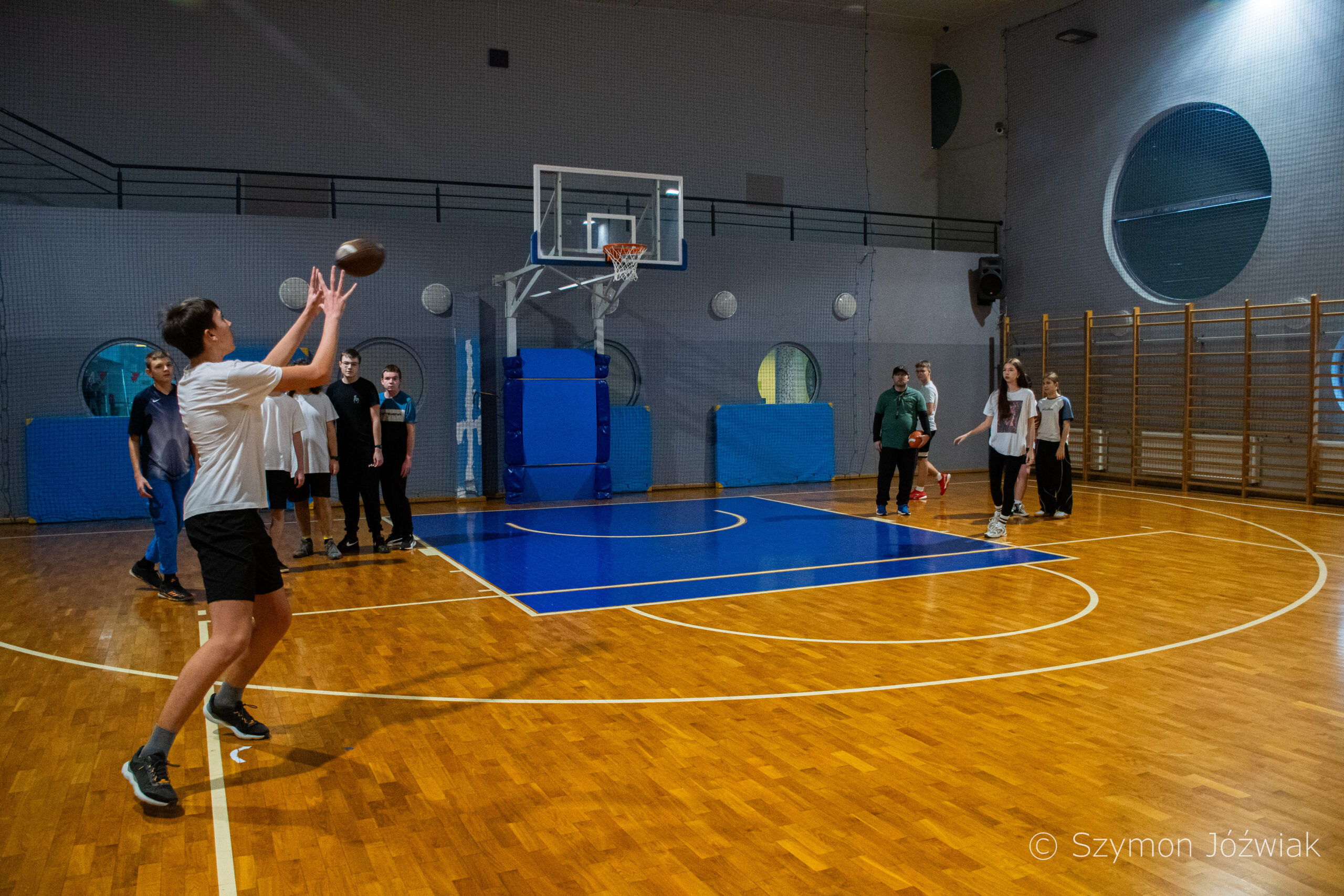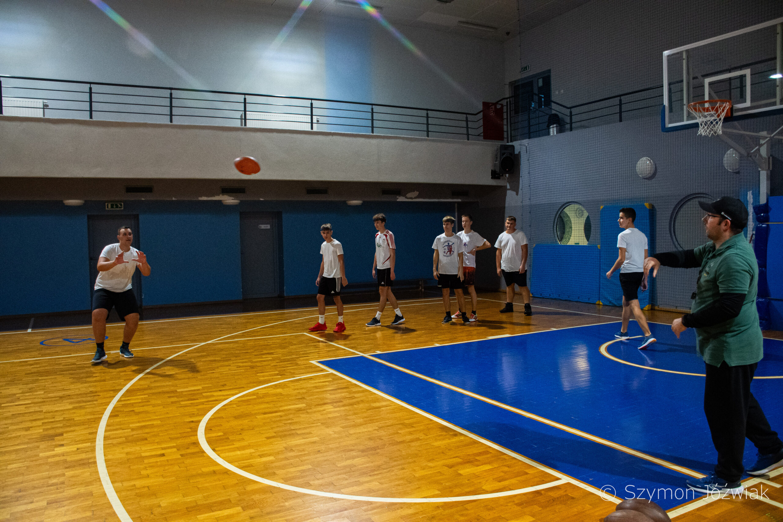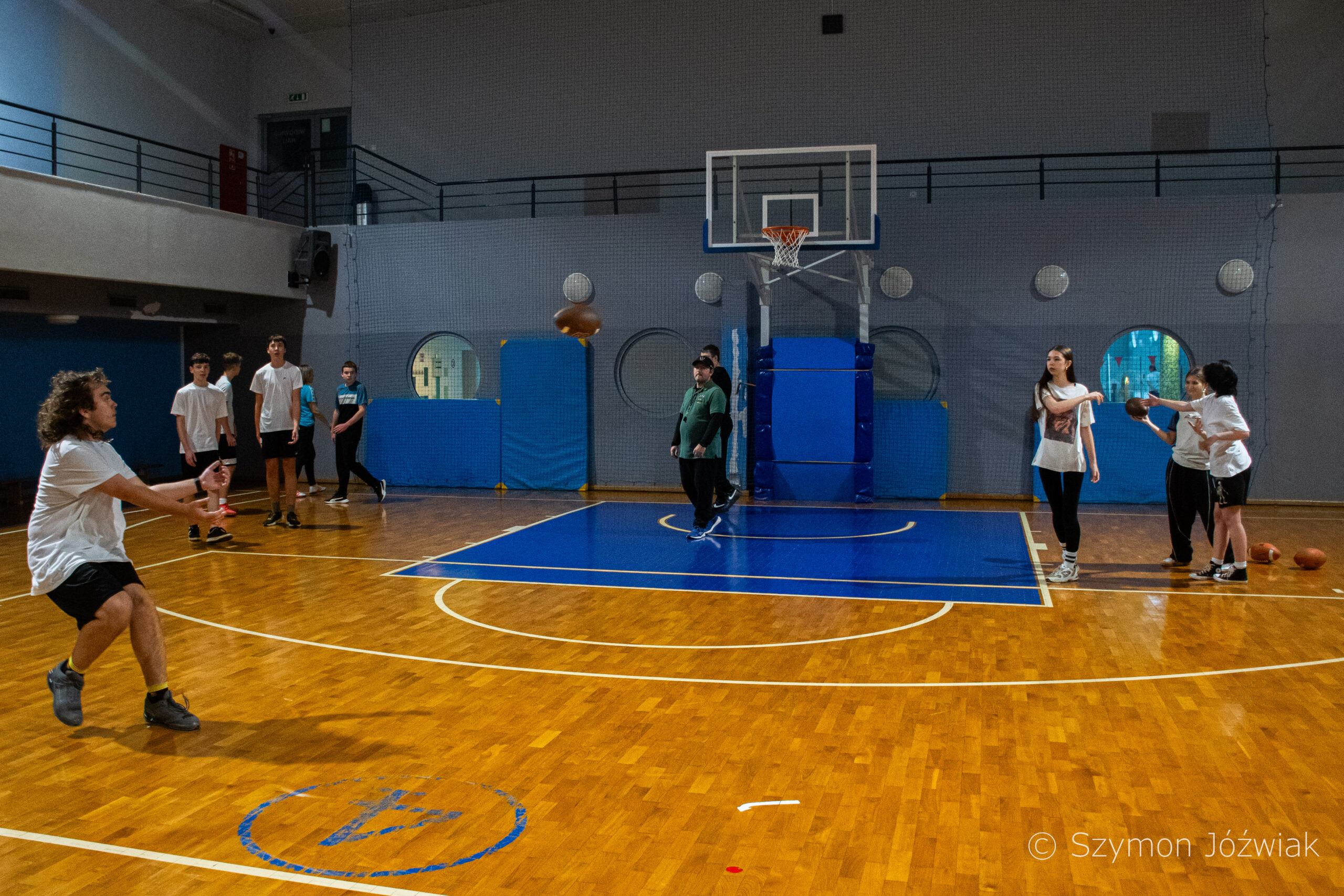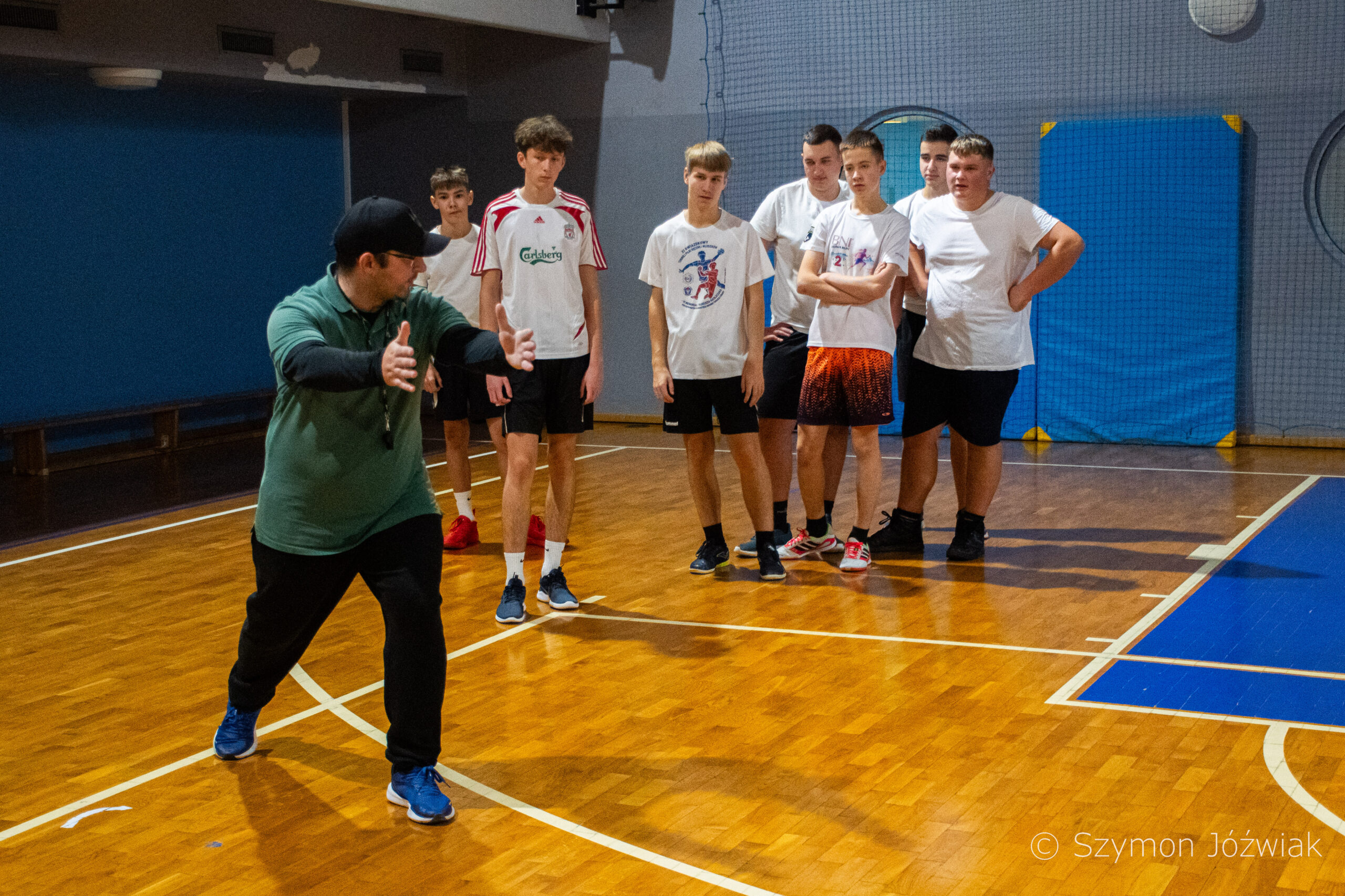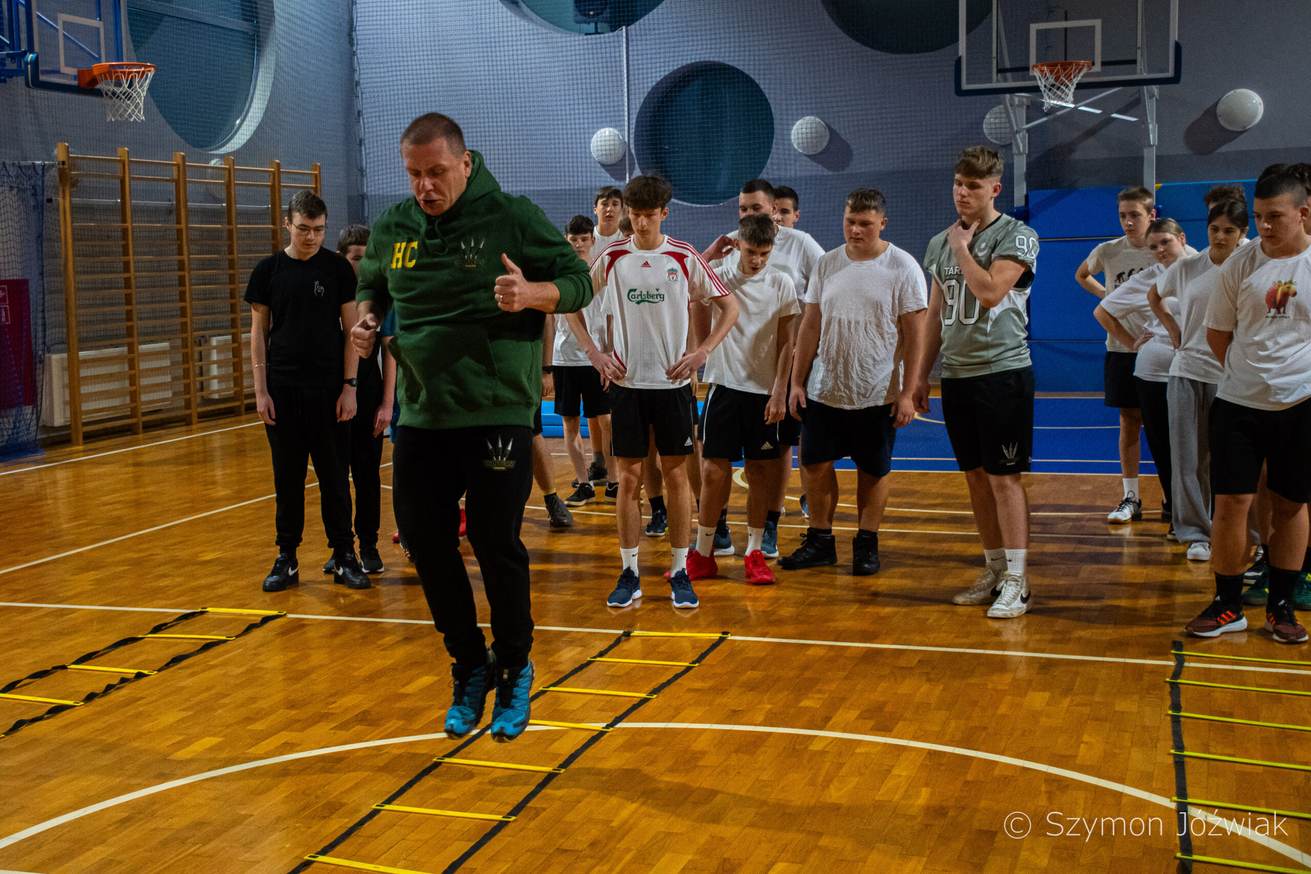 Zajęcia rozpoczęły się od wspólnej, ogólnorozwojowej rozgrzewki, po której uczniowie zostali podzieleni na trzy grupy. Każda z grup trenowała z innym zawodnikiem Hunters, ucząc się techniki rzutu piłką, chwytania jej w biegu, blokowania przeciwnika oraz ćwicząc koordynację ruchową. Zawodnicy i trenerzy dbali o to, aby każdy uczestnik wyniósł z zajęć jak najwięcej – zarówno wiedzy, jak i dobrej sportowej energii.