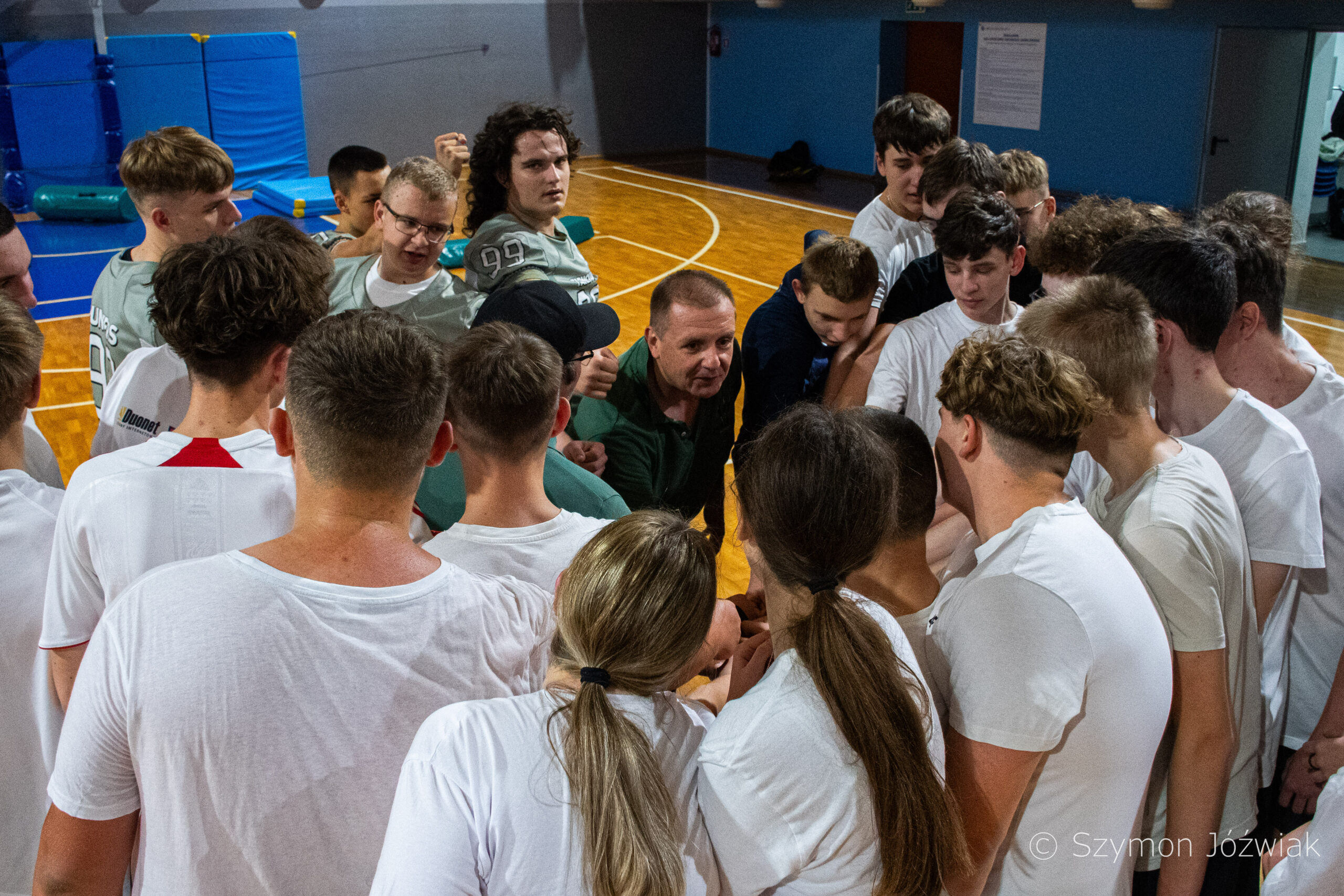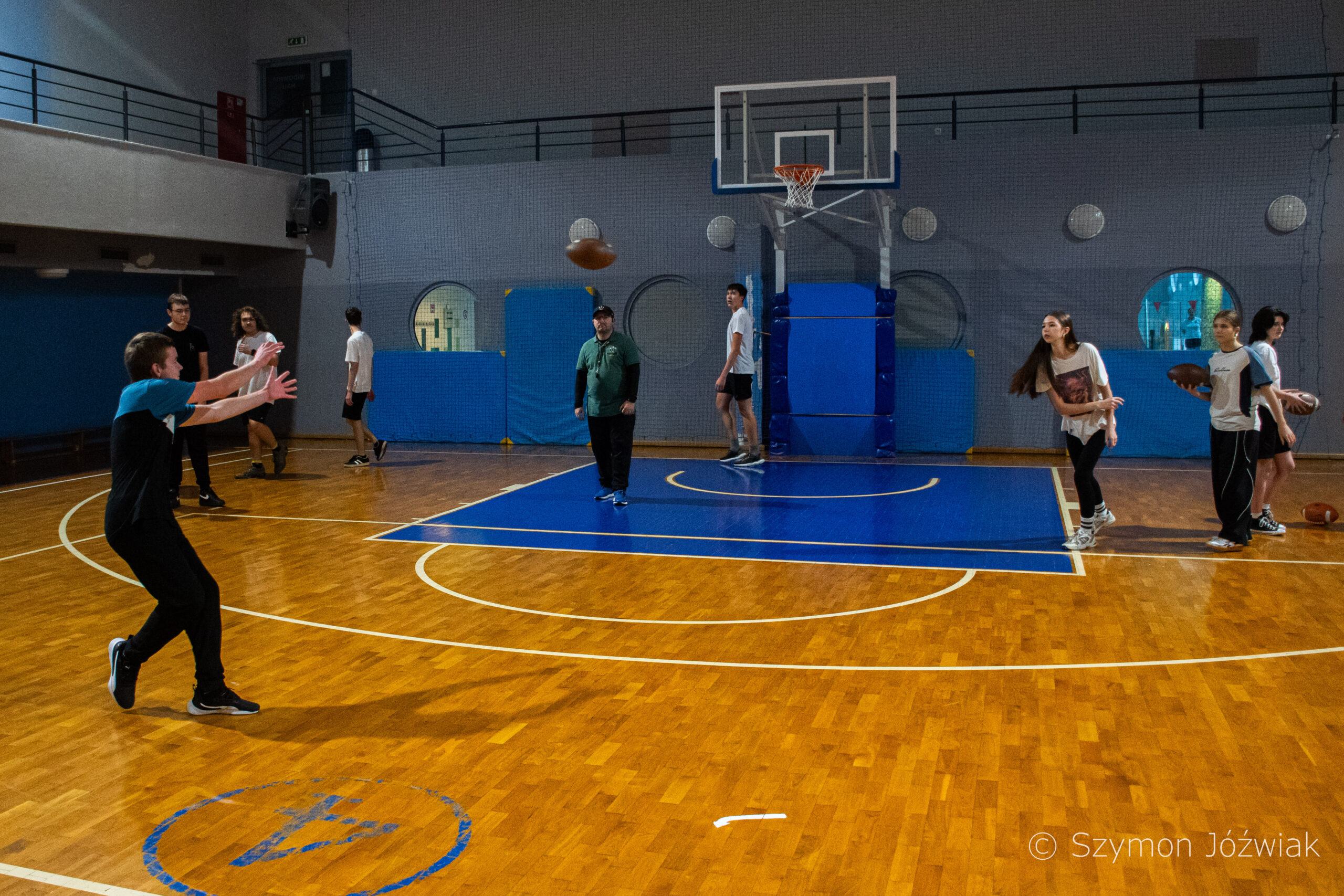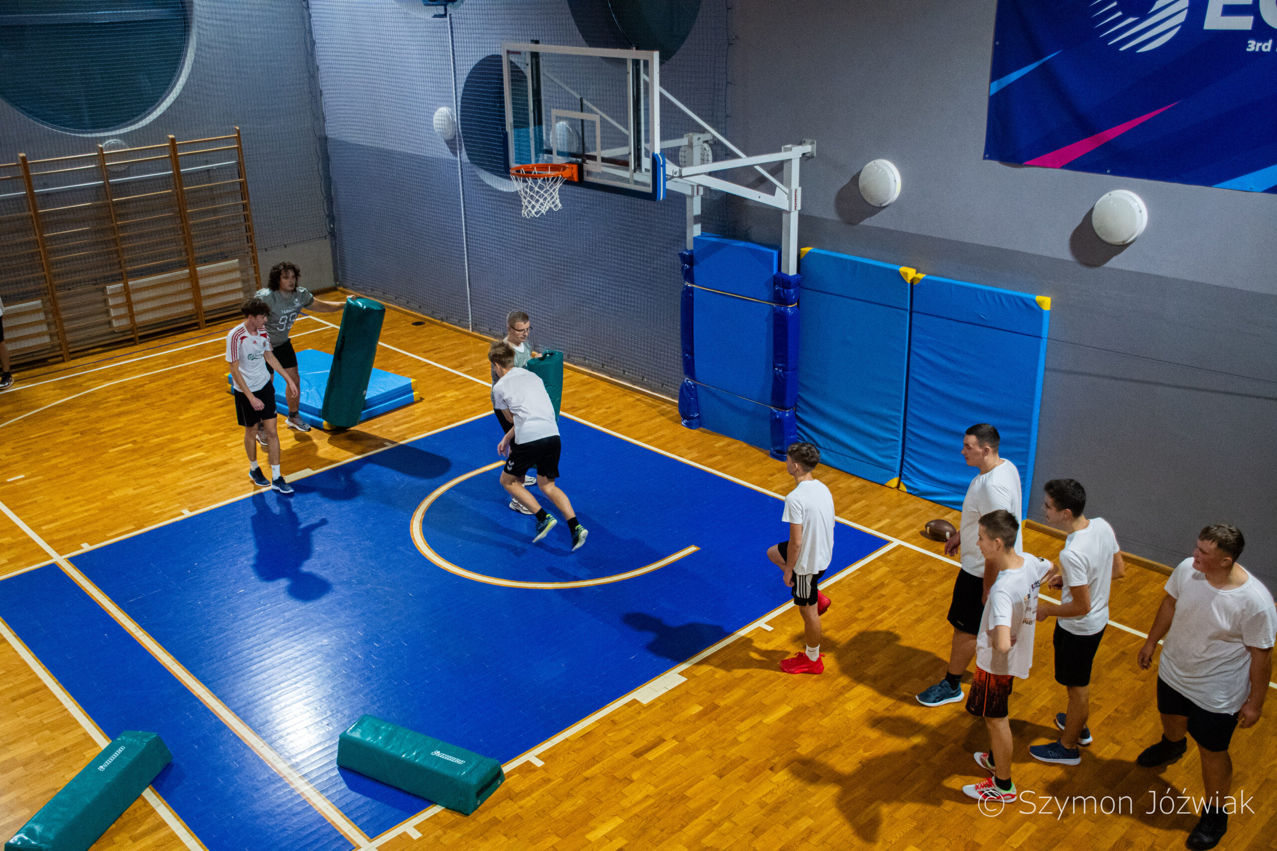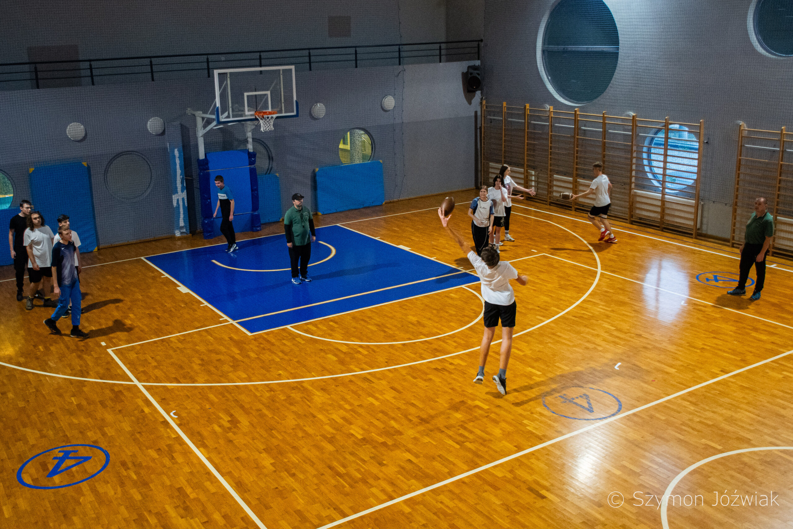 Zajęcia rozpoczęły się od wspólnej, ogólnorozwojowej rozgrzewki, po której uczniowie zostali podzieleni na trzy grupy. Każda z grup trenowała z innym zawodnikiem Hunters, ucząc się techniki rzutu piłką, chwytania jej w biegu, blokowania przeciwnika oraz ćwicząc koordynację ruchową. Zawodnicy i trenerzy dbali o to, aby każdy uczestnik wyniósł z zajęć jak najwięcej – zarówno wiedzy, jak i dobrej sportowej energii.