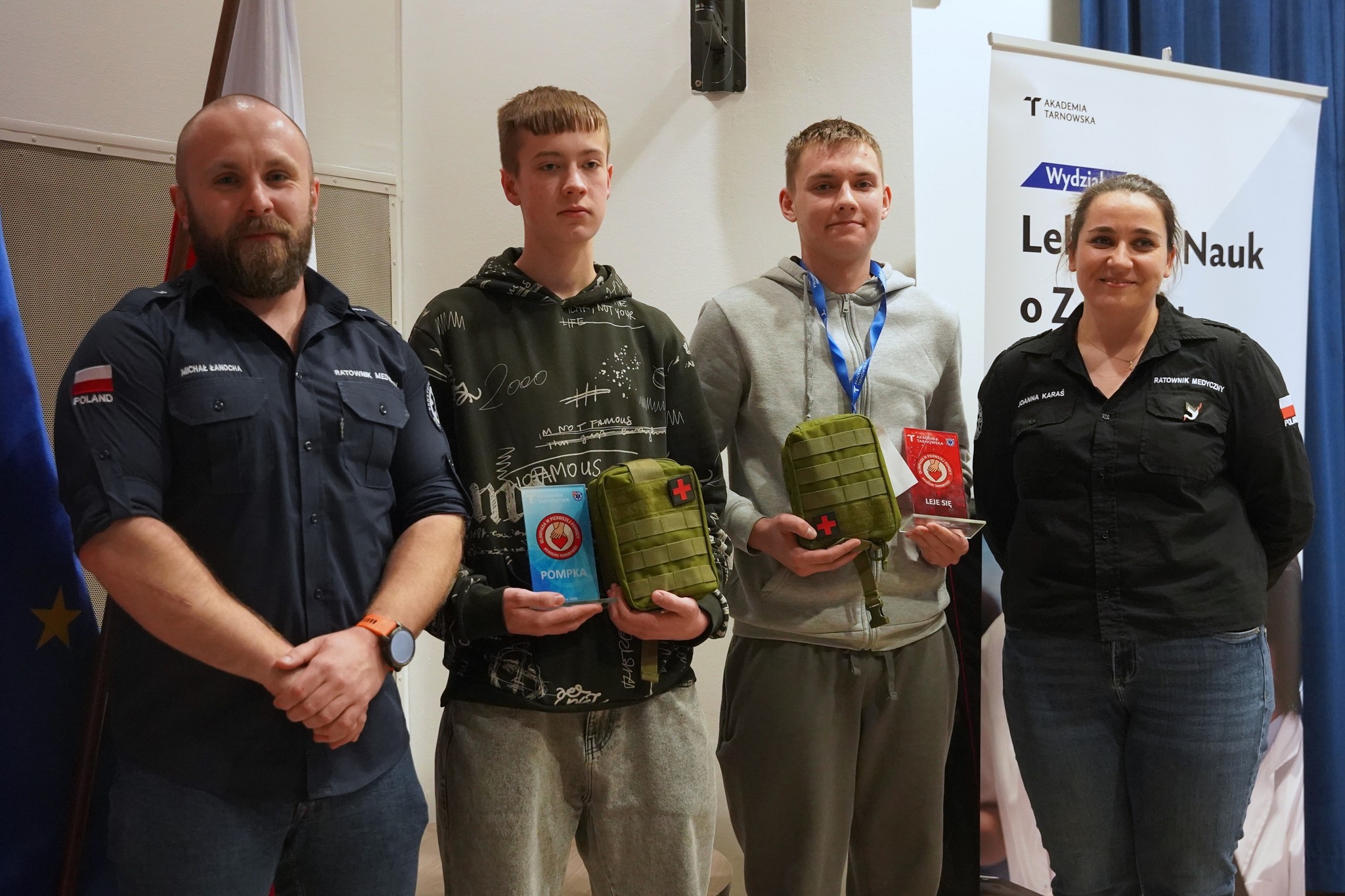 Uczniowie naszej szkoły wzięli udział w II edycji Olimpiady w Pierwszej Pomocy dla Uczniów Szkół Średnich, organizowanej przez Akademię Tarnowską we współpracy z Powiatową Stacją Pogotowia Ratunkowego w Tarnowie. Naszą szkołę reprezentowała drużyna w składzie: Michał Kuklewicz oraz Wiktor Nowak. Wydarzenie miało na celu sprawdzenie wiedzy teoretycznej oraz praktycznych umiejętności z zakresu udzielania pierwszej pomocy.
