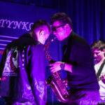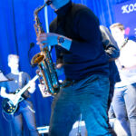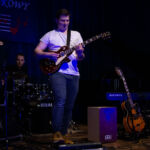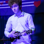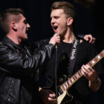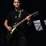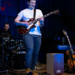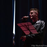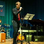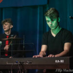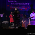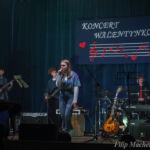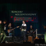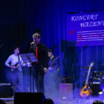 Również gościnnie wystąpiła para taneczna, Weronika Żaba oraz Hubert Kotul (klasa 2FOT), reprezentujący szkołę tańca MIKa. Dostojnie, elegancko, efektownie zatańczyli walca angielskiego, a następnie ogniste tango. Zespół Azyl w Środku Miasta był już wielokrotnie zapraszany na nasze koncerty i zawsze są to cudowne spotkania z naszą publicznością. Za każdym razem prezentują nowy repertuar, który porywa publiczność z każdym kolejnym utworem. Wokalista Klaudiusz Klich zawsze czaruje niepowtarzalną barwą głosu i zdarza się, że już w czasie koncertu pod wpływem impulsu modyfikuje repertuar, licząc na elastyczność i umiejętność improwizacji swoich muzyków. I zawsze wszystko udaje się, muzycy są prawdziwymi perfekcjonistami! Większość członków zespołu to uczniowie klasy 4N i niestety jest to już ich ostatni rok w naszej szkole.
