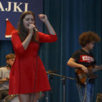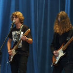 A potem nastąpiło mocne uderzenie! Na scenę wbiegli muzycy szkolnego zespołu ZST Band i od razu porwali wszystkich rytmami rocka. Muzycy brawurowo grali, skakali, rzucali włosami. Prawdziwe wulkany energii i prawdziwe ostre granie! Mocnym wokalem popisali się: Julia i Daniel. Obydwoje doskonale wpisali się w energię i styl zespołu. Aż trudno uwierzyć, iż ci młodzi muzycy poznali się i zaczęli razem grać zaledwie trzy miesiące temu, gdy rozpoczęli naukę w naszej szkole.