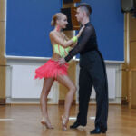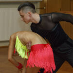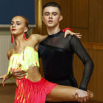 Po zmianie oświetlenia bezszelestnie wpłynęła na parkiet para taneczna. Eteryczną Weronikę poprowadził w tańcu Hubert, uczeń naszej szkoły. Para wirowała w rytmie romantycznej rumby i szybkiego, wesołego jive’a. Tak odmienne, a wykonanie jednakowo perfekcyjnie tańce, wzbudziły zachwyt publiczności. Należy nadmienić, iż Weronika i Hubert są profesjonalną parą taneczną i biorą udział w różnych zawodach i konkursach tańca.