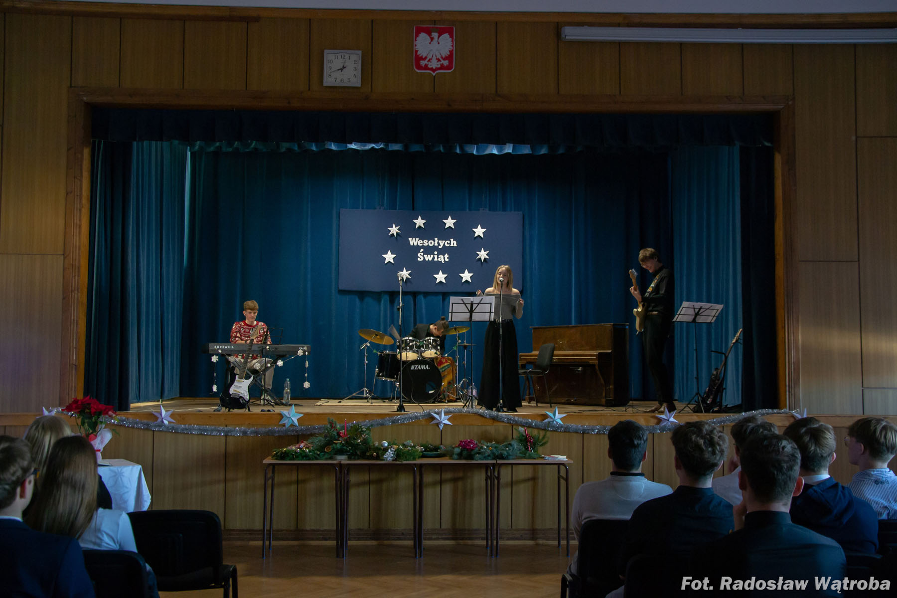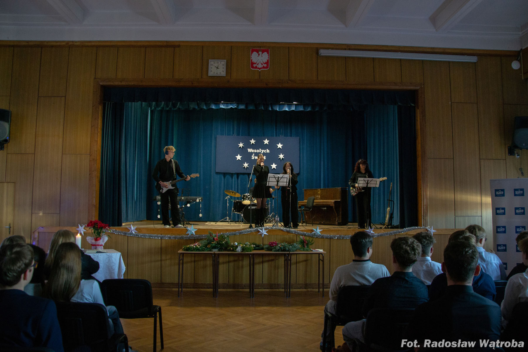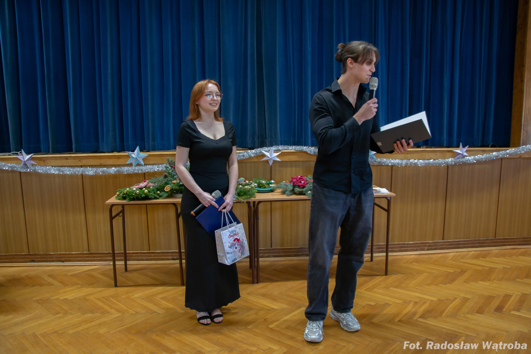 19 grudnia w auli Zespołu Szkół Technicznych odbył się wyjątkowy koncert świąteczny, który wprowadził całą społeczność szkolną w bożonarodzeniowy nastrój. Występy muzyczne i wokalne uczniów przeplatane były kiermaszem stroików świątecznych, przygotowanych z dużą starannością i kreatywnością. Wydarzenie stało się okazją do wspólnego świętowania, integracji oraz podkreślenia wartości tradycji i wzajemnej życzliwości.