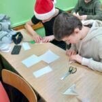 Choć dla niektórych było to pierwsze spotkanie z tą formą składania papieru, każdy z uczniów włożył w swoją pracę wiele wysiłku i zaangażowania. Powstałe gwiazdy okazały się tak piękne, że postanowiliśmy ozdobić nimi szkolną choinkę.