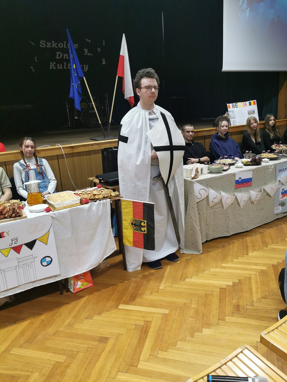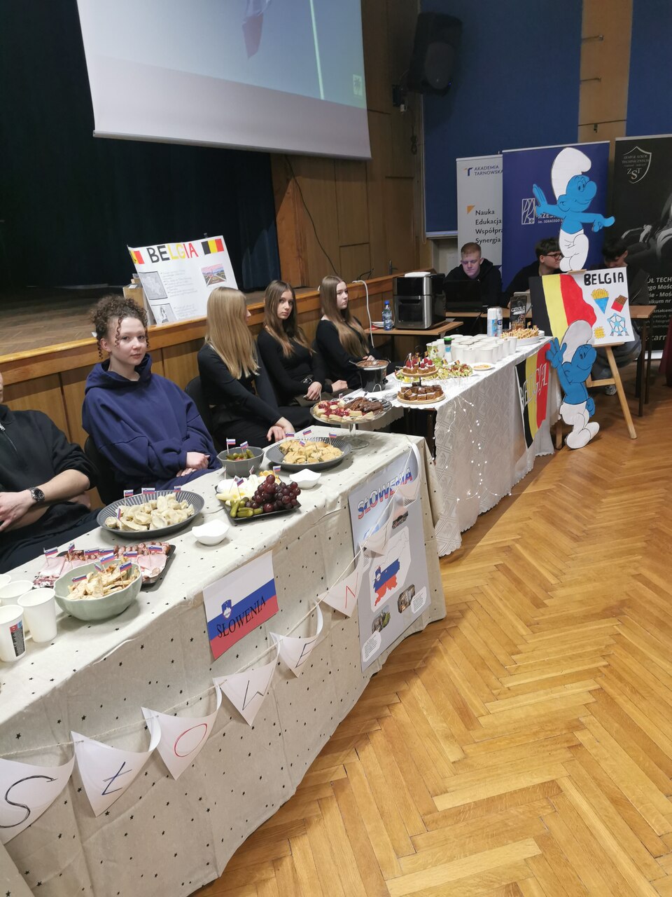 Po raz kolejny w naszej szkole, w ramach Szkolnych Dni Kultury, zrealizowano projekt edukacyjny „Poznajemy kraje Unii Europejskiej”. Wydarzenie adresowane jest do uczniów klas pierwszych i przygotowane przez klasy starsze. Jak co roku cieszyło się ogromnym powodzeniem. Młodzież przygotowała stoiska poświęcone 23 krajom Unii Europejskiej. Przybliżały one kulturę, tradycje kulinarne oraz ciekawostki turystyczne tych krajów. Spotkanie w auli szkolnej otworzyła Pani Dyrektor Beata Łabno. Następnie stoiska poszczególnych krajów prezentowały swój dorobek. Należy podkreślić wysoki poziom prezentacji oraz ogromne zaangażowanie młodzieży naszej szkoły. Estetykę stanowiska danego kraju oraz sposób jego prezentacji oceniała Komisja Konkursowa pod przewodnictwem Pani Marzeny Gawron. Swoje głosy mogli również oddać uczniowie klas