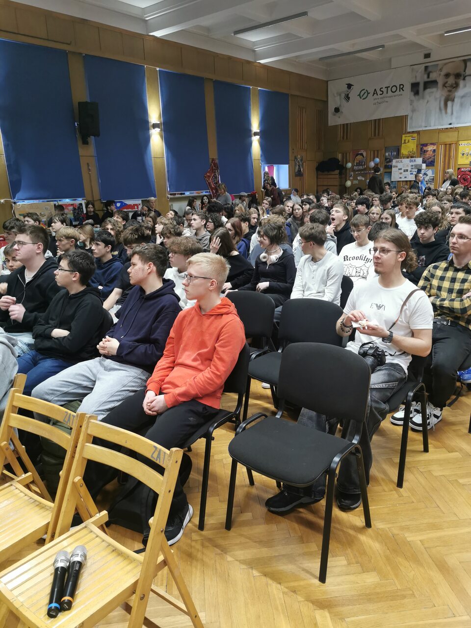 pierwszych zgromadzeni na szkolnej auli.