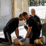 Następnie w części praktycznej zespoły miały do pokonania trasę z rozmieszczonymi na niej 4 stacjami, które składały się z szeregu scenek, gdzie zawodnicy mieli za zadanie wykonać czynności ratownicze oceniane i punktowane przez sędziów.
