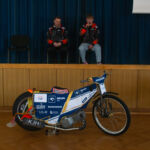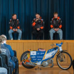 W auli zgromadziło się ponad 200 uczniów i uczennic naszej szkoły. Mateusz na spotkanie przybył w towarzystwie swoich mechaników. Przywiózł motocykl żużlowy, zdobyte medale i kevlary, w których startuje w lidze polskiej, szwedzkiej, duńskiej a także w zawodach indywidualnych.