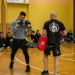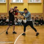 W ramach dni kultury 24.02.2023r. Zespół Szkół Technicznych na zaproszenie nauczycieli wychowania fizycznego odwiedziło dwóch wyśmienitych gości. Trener mieszanych sztuk walki i prekursor tej dyscypliny sportu w Tarnowie Radek Piechnik,który na co dzień trenuje dzieci i młodzież w klubie Legion team oraz zawodnik MMA Legion team Sławomir Rawiński. Celem spotkania było propagowanie sportu oraz aktywności fizycznej wśród młodzieży jak również uświadomienie młodzieży jak ważny jest ruch, systematyczność, samodyscyplina w życiu młodego człowieka. Spotkanie zaczęło się od przedstawienia gości, ich dorobku sportowego oraz trenerskiego, krótkiej rozgrzewki oraz pokazu niektórych elementów techniki w rękawicach i z tarczami bokserskimi. Po pokazie trener Radek Piechnik opowiedział o tym jak funkcjonuje klub, skąd wzięła się jego pasja do uprawiania a później trenowania mieszanych sztuk walki, na czym polega trenowanie. Sławomir Rawiński opowiedział o swojej drodze od strongmana do fightera MMA, o swoich walkach oraz najbliższej przyszłości związanej z MMA. Goście odpowiadali na pytania uczniów a po spotkaniu uczniowie mogli porozmawiać osobiście oraz spróbować swoich sił w kopnięciach w tarczę oraz uderzając rękawicami w ochraniacze bokserskie. Na koniec wszyscy zrobili sobie pamiątkowe zdjęcie. W spotkaniu wzięło udział 8 klas naszej szkoły.