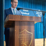 Uroczysta akademia z okazji Dnia Edukacji Narodowej w dniu 13 października 2023 roku rozpoczęła się od podpisania umowy o współpracy Zespołu Szkół Technicznych z firmą ELZAT.
