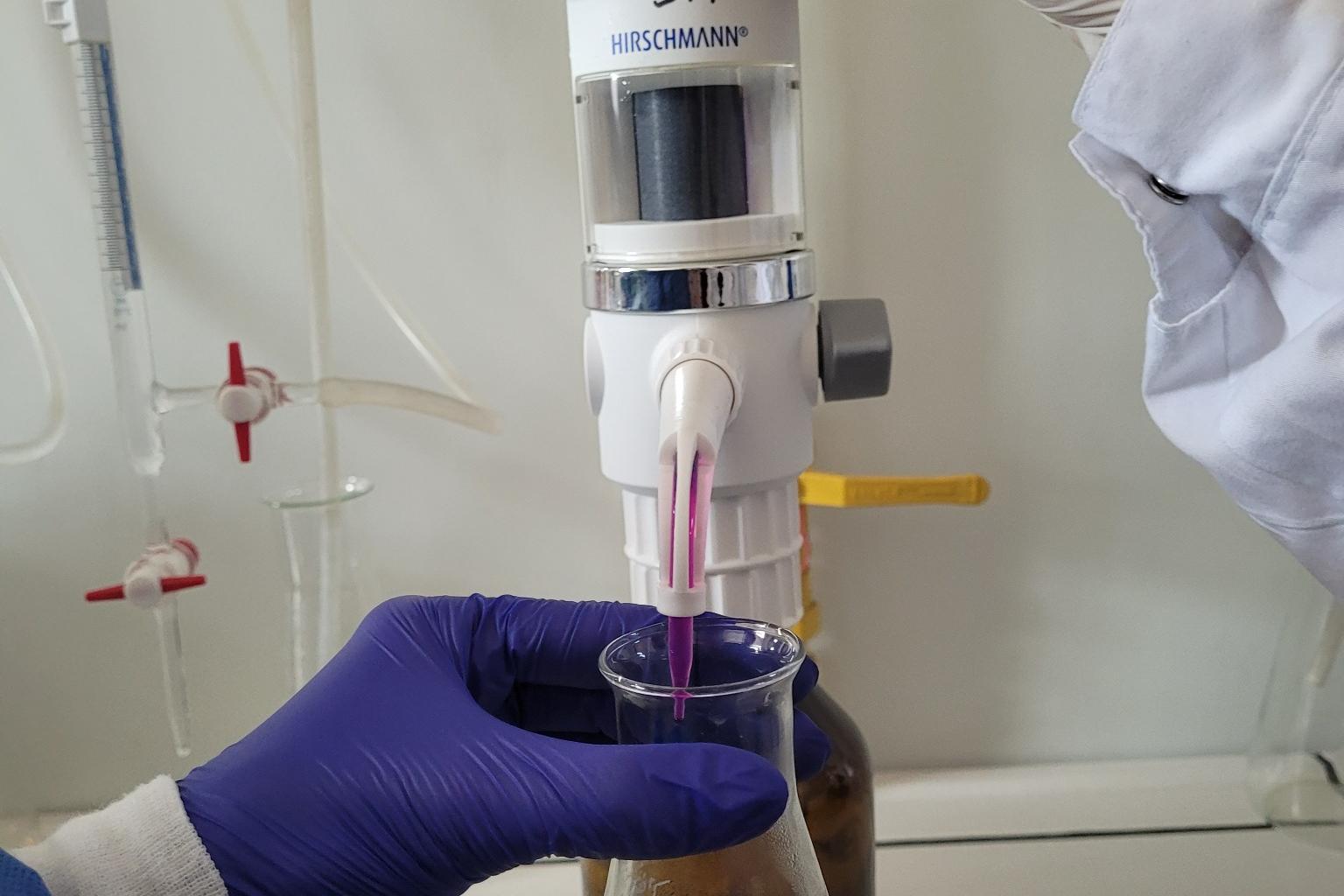 Podczas warsztatów uczniowie poznali nowe zagadnienia, zdobyli nowe umiejętności, takie jak odmierzanie roztworów pipetą automatyczną czy miareczkowanie przy użyciu biurety automatycznej.