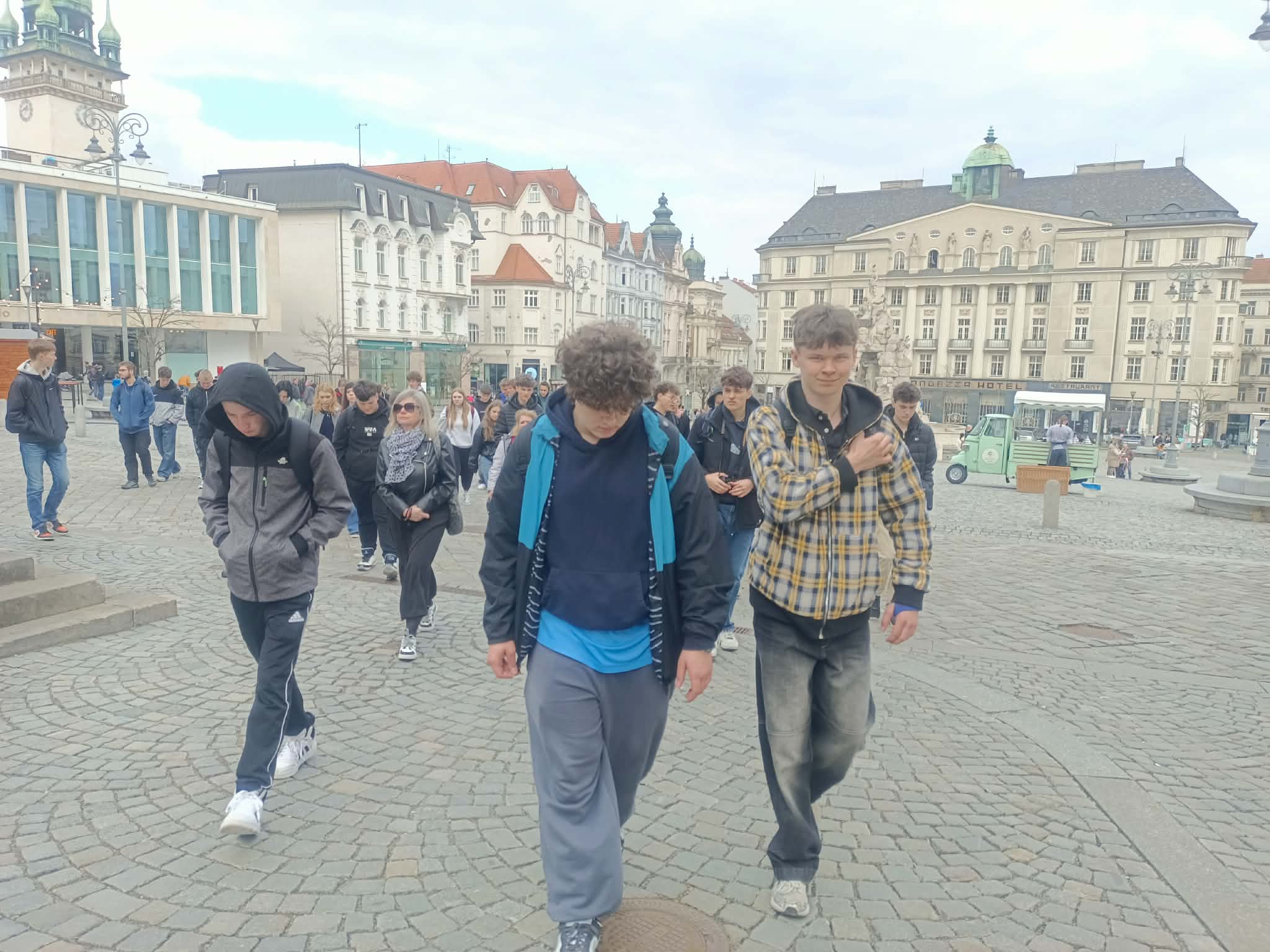 Weekend stażystów  ZST w Ostrawie minął pod znakiem aktywności fizycznej. Rozpoczął się już w piątek po południu, kiedy korzystając z wolnych boisk szkoleniowych ostrawskich drużyn  piłki nożnej, zainteresowani uczniowie mogli na nim zagrać. W sobotę dzień rozpoczęliśmy późniejszym śniadaniem, po którym, zgodnie z planem, udaliśmy się do ZOO. Wymieniane jest ono jako jedna z największych atrakcji Ostrawy. Położone na malowniczym terenie, w miejskim lesie o powierzchni ponad 100 hektarów gromadzi wiele gatunków zwierząt i roślin w tematycznych pawilonach. Każdy mógł we własnym tempie podziwiać zarówno faunę jak i florę budzącą się do życia.  Potem udaliśmy się do centrum miasta, by po szybkim obiedzie z wieży ratuszowej,  z perspektywy 86 metrów wysokości, podziwiać panoramę miasta. Stąd pojechaliśmy komunikacją miejską do Dolnych Witkowic, kolejnej atrakcji Ostrawy, by z bliska zobaczyć pozostałości po dawnej hucie, która obecnie jest zabytkowym kompleksem hutniczym. Jej osobliwości to stary piec hutniczy, koksownia i inne zabytki industrialne. Z dołu podziwialiśmy Bolt Tower. W niedzielę po wczesnym śniadaniu wyjechaliśmy autokarem do Brna, drugiego co do wielkości miasta Republiki Czeskiej. Ogromną niespodzianką dla nas była wizyta w Jaskiniach Pankvy z przepaścią Macocha.